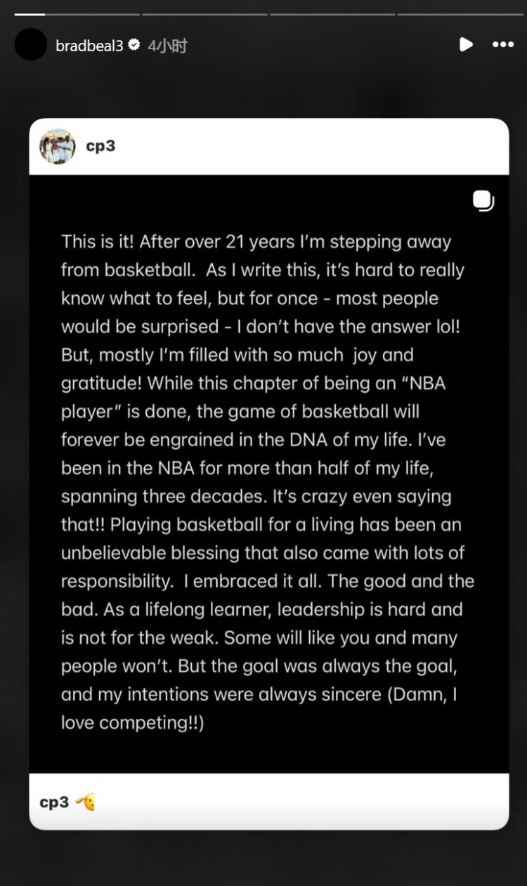 世界杯手机观看-都别忘了我呀!比尔转发保罗退役长文 送上无声祝贺 xiaoqiao 2026-03-07 英超 79 0 2月14日讯 NBA球星克里斯·保罗在社媒宣布退役,结束21年职业生涯。前队友比尔在INS转发了保罗的退役长文,送上无声祝贺。